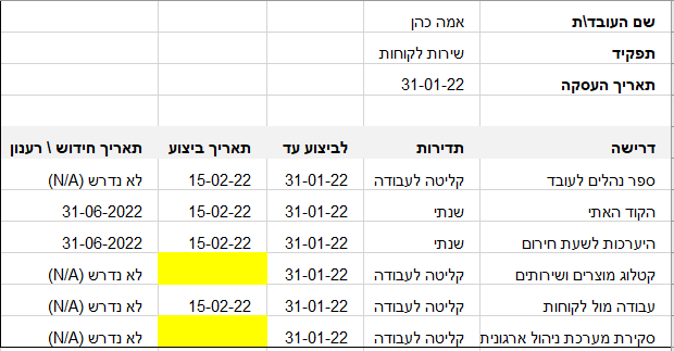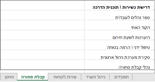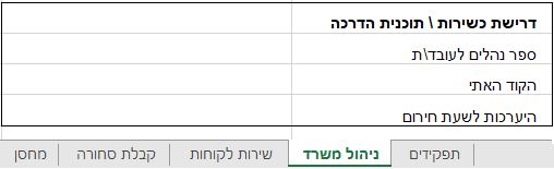 דוגמה: רישום עובדים להלן מצביע על פער בהכשרה לעובד בתפקיד שירות לקוחות.